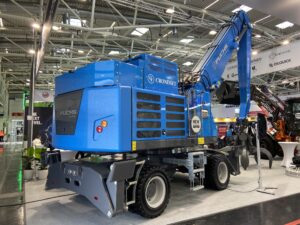 Die Entwicklungen im Bereich elektrisch- und akkubetriebener Umschlagmaschinen bei Fuchs schreiten weiter voran. Auf der IFAT wurde die neue Fuchs MHL840 Modulair vorgestellt. Diese mittelgroße Umschlagmaschine kann sowohl an einen Stromanschluss angeschlossen werden als auch mittels der auf der Maschine montierten Akkus einige Stunden eigenständig arbeiten, ohne an das Stromnetz angeschlossen zu sein.