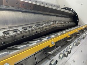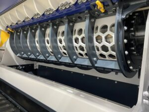 Bei beiden Rotor-Systemen können optional sowohl die Messer als auch die Messerhalter ausgetauscht und einfach ersetzt werden, wodurch Aufschweißungen auf ein Minimum reduziert und sogar vermieden werden. Dank des montierten „Pushers“ wird das Produkt gleichmäßig auf den Rotor gedrückt, sodass hohe Kapazitäten erreicht werden. Beide Seiten der Maschine können dank hydraulischer Klappen gut für Wartungs- und Reinigungsarbeiten erreicht werden. Sollte sich ein Fremdstoff in der Maschine verfangen, kann durch diese Türen einfach Zugang zum Rotor verschafft werden.