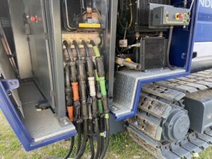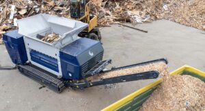 Beim Zerkleinerungsspezialisten aus Österreich fiel sofort der neue Lindner Merak 2800 auf. Dieser ist mit einem elektrisch angetriebenen Ein-Wellen-Rotor von 2.800 mm Länge ausgestattet. Der elektrische Antrieb treibt den Rotor direkt mittels des bekannten Antriebssystems an, das Lindner seit vielen Jahren bei seinen stationären Maschinen einsetzt. Die Rotordrehzahl ist zwischen 55 und 103 Umdrehungen pro Minute regelbar. Dank des 250 kW E-Motors ist ausreichend Kraft vorhanden. Für den Transport vor Ort und während des Transports ist ein kleines Powerpack in der Maschine montiert. Vor Ort wird die Maschine dann einfach mittels Power-Lock angeschlossen.